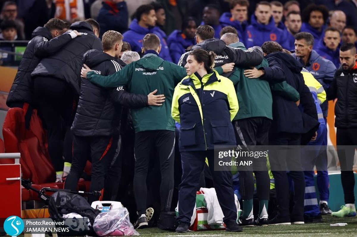 عکس و ویدیو| وضعیت اورژانسی در بازی هلند و مجارستان به خاطر ایست قلبی یک نمیکت نشین!