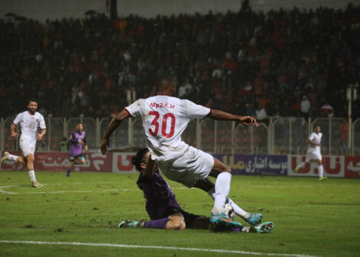 برخورد توپ به مدافع خیبر (دقیقه ۹۰+۱۶)