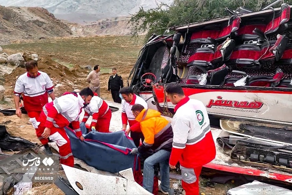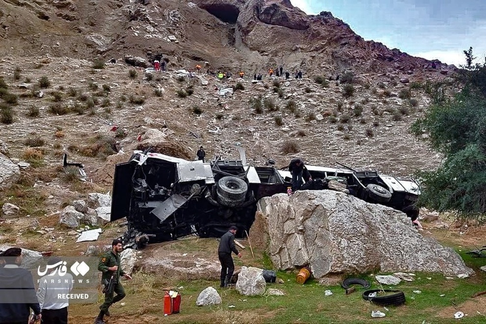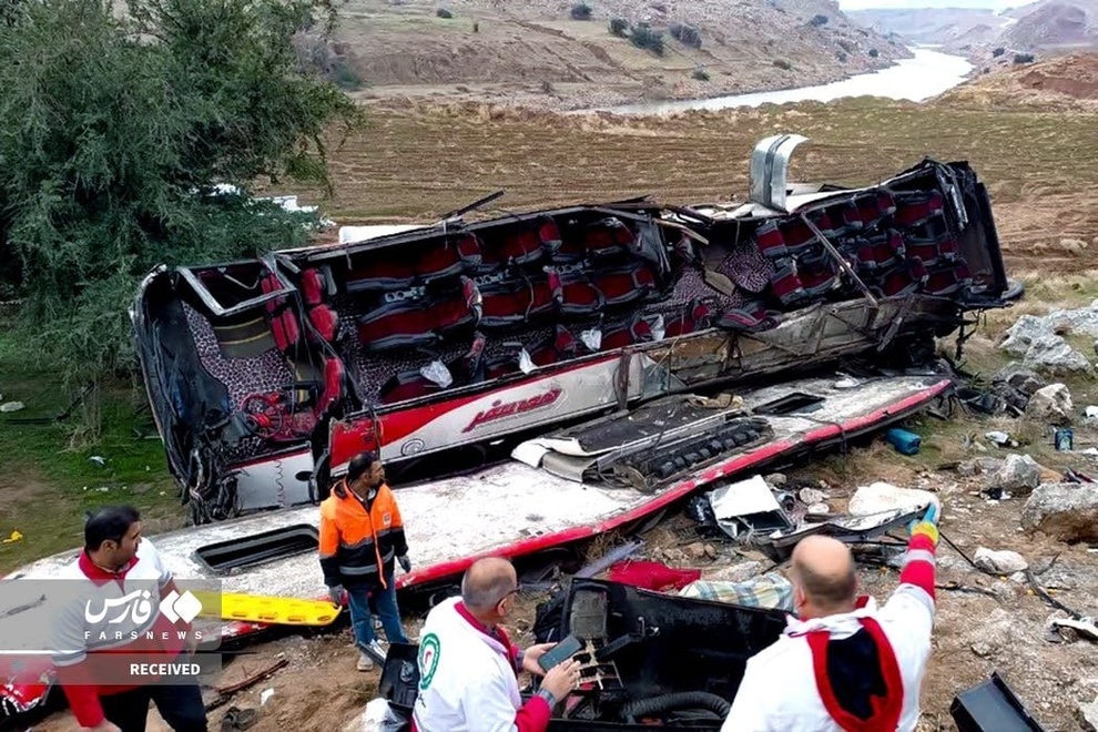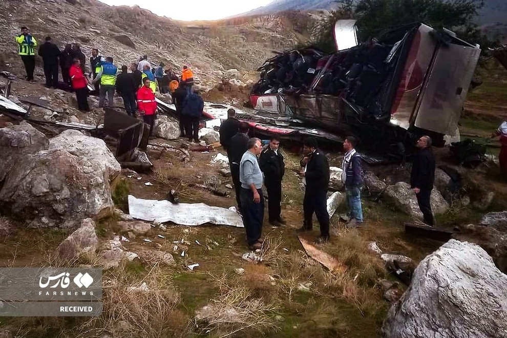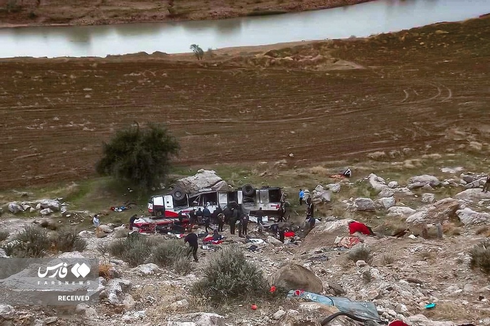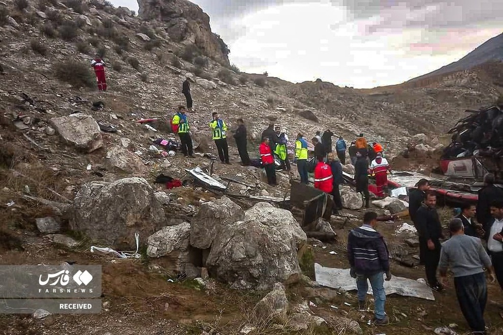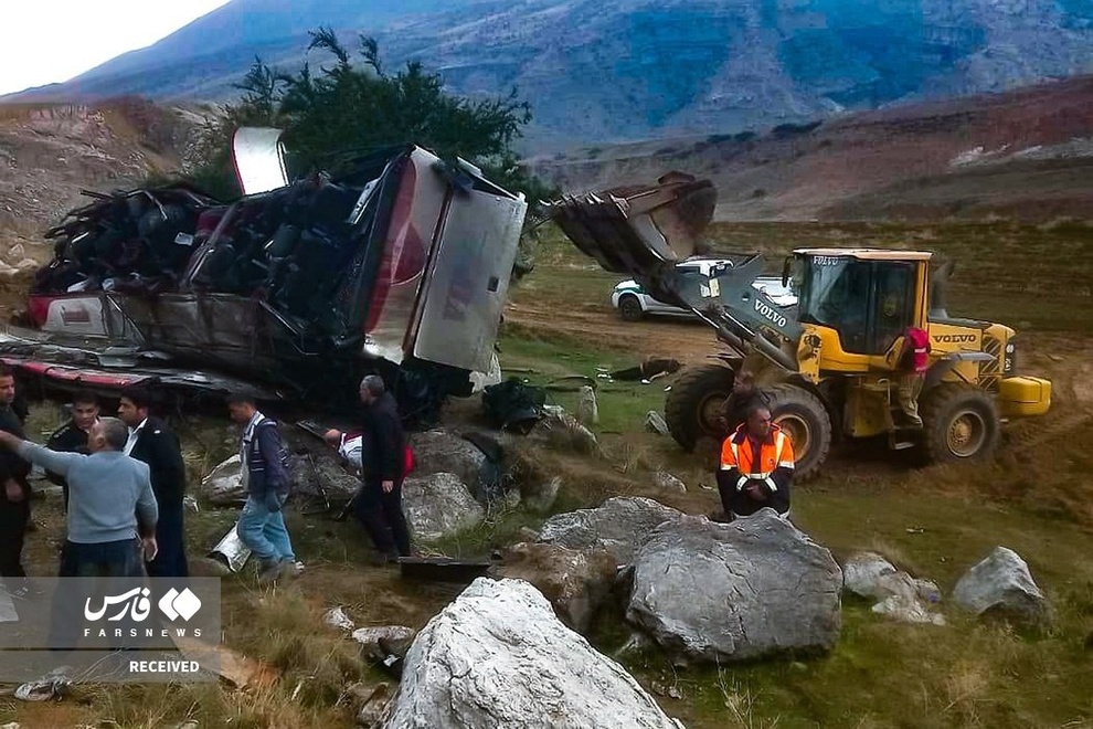 سقوط مرگبار اتوبوس به دره در پلدختر + عکس ها