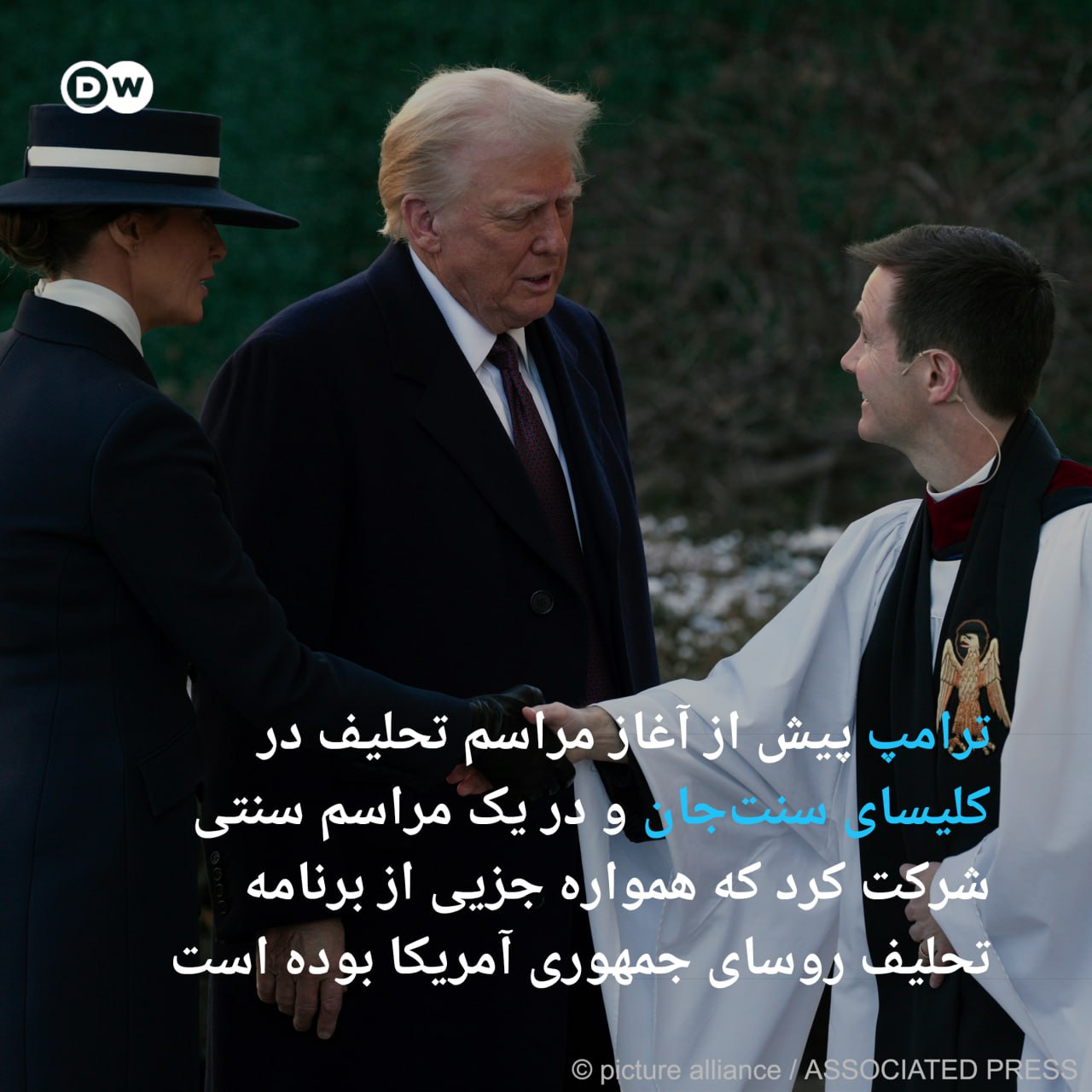ترامپ پیش از آغاز مراسم تحلیف در کلیسای سنتجان و در یک مراسم سنتی شرکت کرد که همواره جزیی از برنامه تحلیف روسای جمهوری آمریکا بوده است.