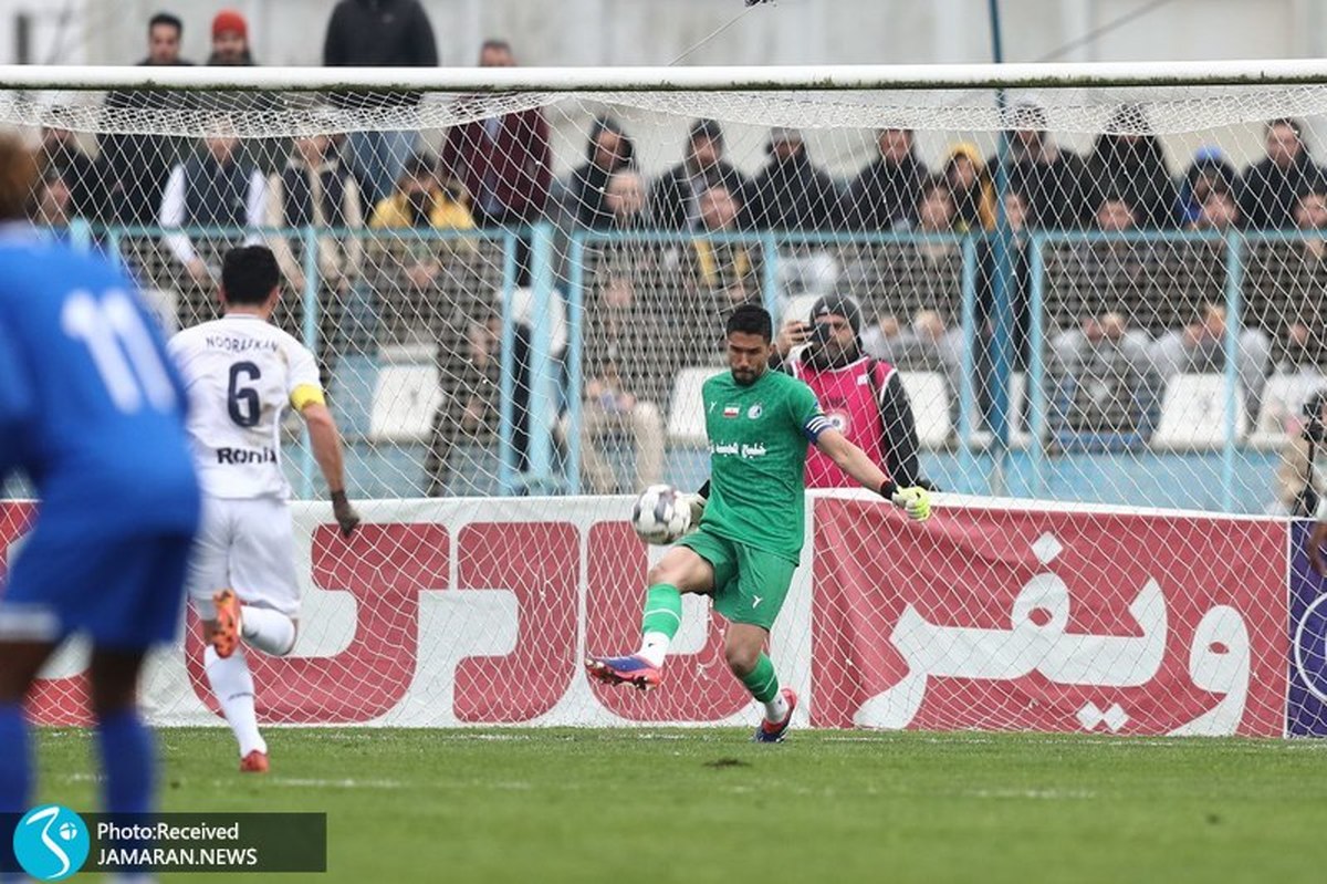 در جریان نیمه اول بازی ملوان و استقلال، حسین حسینی روی ضربه کاشته میزبان واکنش عجیبی داشت و در حالی که می توانست با دست توپ را جمع کند، با یک واکنش ریسکی با پا توپ را دفع کرد.