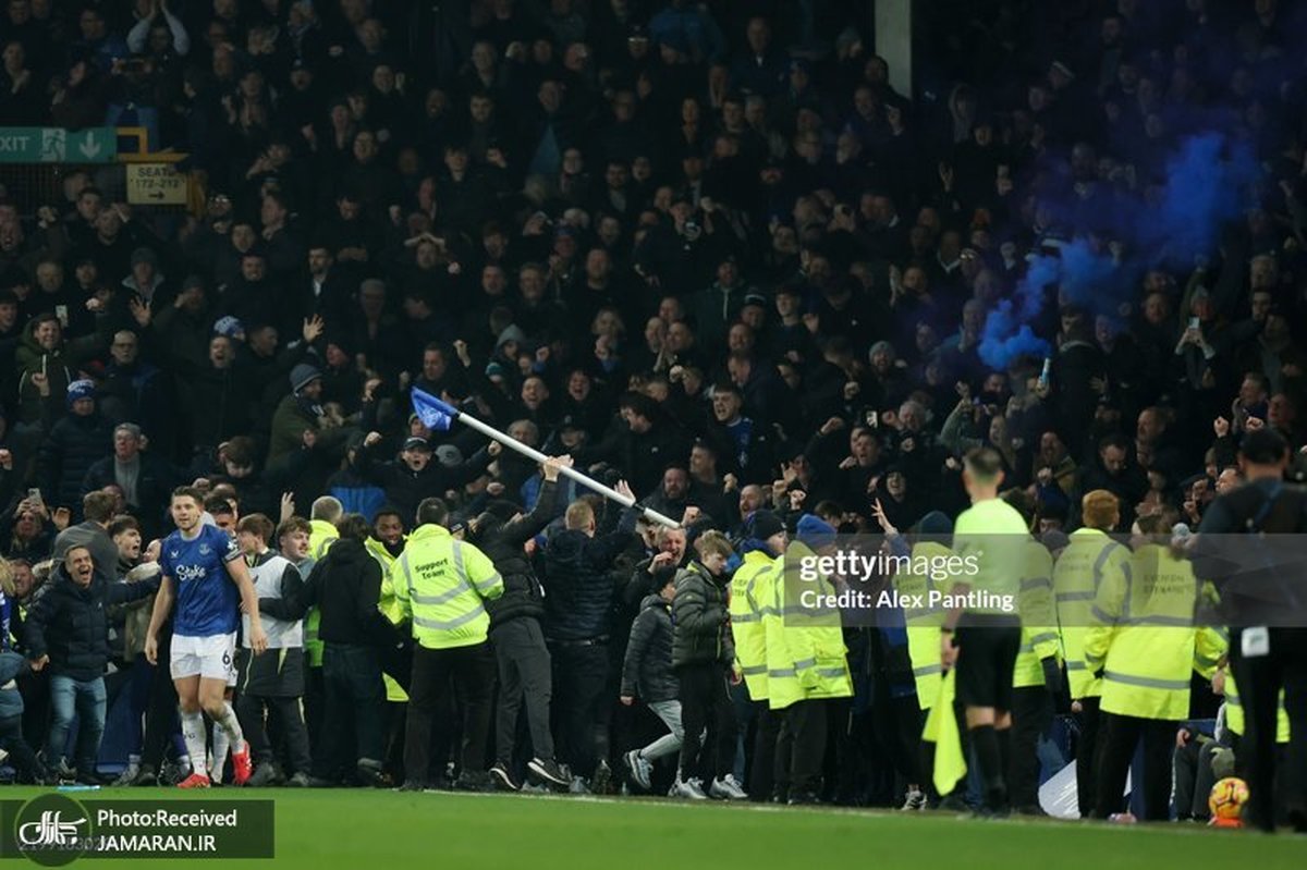 عکس و ویدیوی خوشحالی دیوانه وار بازیکنان و هواداران اورتون بعد از گلزنی به لیورپول