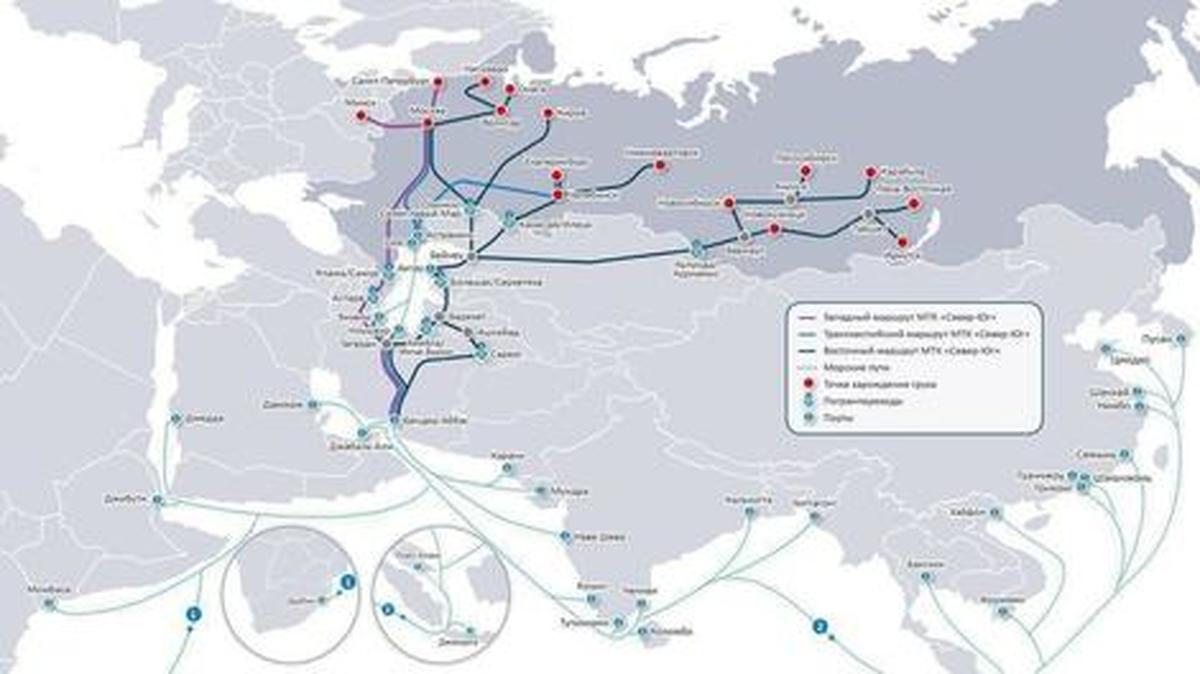کریدور حملونقل بینالمللی «شمال - جنوب» به طول هفت هزار و ۲۰۰ کیلومتر از روسیه (بنادر دریایی در بالتیک) تا هند (بنادر دریایی در خلیج فارس) پیشبینی شده و مسیرهای خودرویی، شبکههای ریلی و مسیر دریایی را شامل میشود. این کریدور شامل سه مسیر اصلی است: مسیر میانی زمینی دریایی با گذر از دریای خزر، غربی (از طریق جمهوری آذربایجان) و شرقی (از طریق قزاقستان، ازبکستان و ترکمنستان) به سمت ایران.