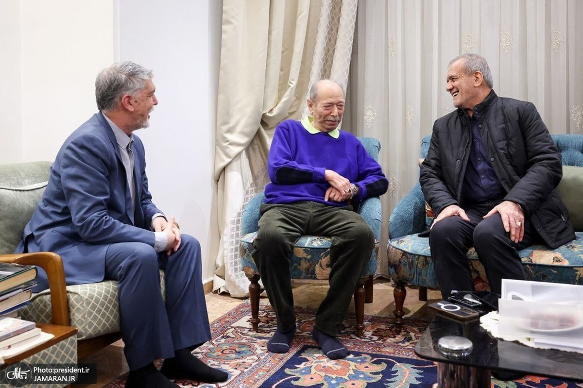 دیدار رئیس جمهور با علی نصیریان به مناسبت روز جهانی تئاتر + عکس و فیلم/ پزشکیان: دولت چهاردهم تا آنجا که بتواند، به هنر کشور کمک خواهد کرد/ پیشنهاد استاد نصیریان برای کمک دولت به پایهگذاری مسابقه نمایشنامه نویسی