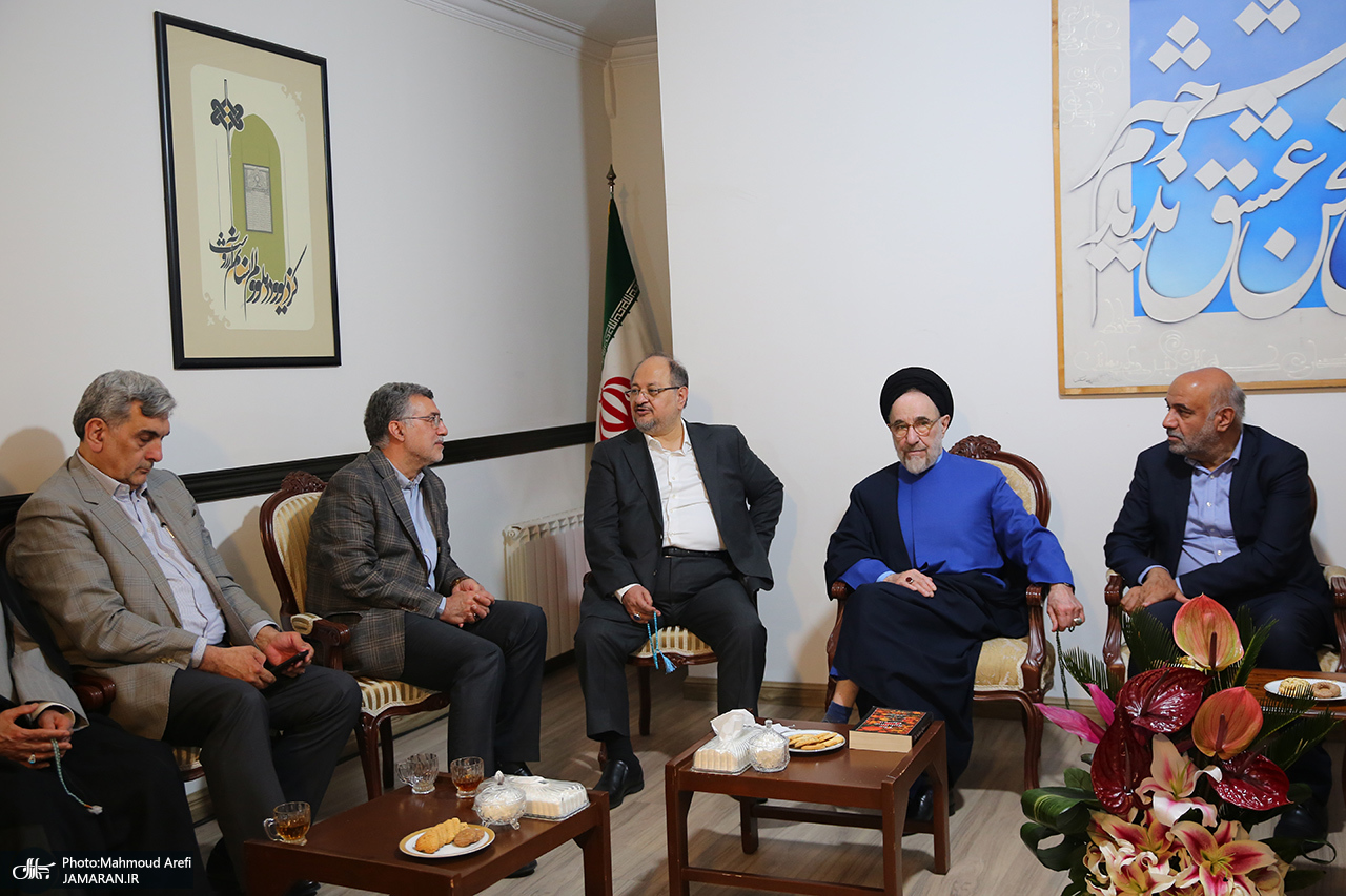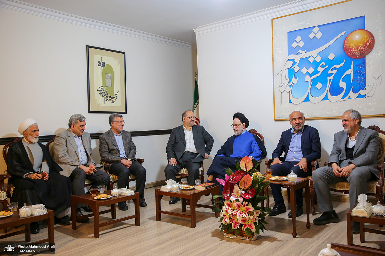 به گزارش جماران، به مناسبت سال نو جمعی از وزرا، معاونین و مدیران دولت چهاردهم و دولتهای پیشین جمهوری اسلامی ایران، عصر امروز دوشنبه ۱۸ فروردین ۱۴۰۴ با حجت الاسلام و المسلمین سید محمد خاتمی دیدار و گفتوگو کردند. در پایان این دیدار نماز مغرب و عشا به امامت سید محمد خاتمی اقامه شد.