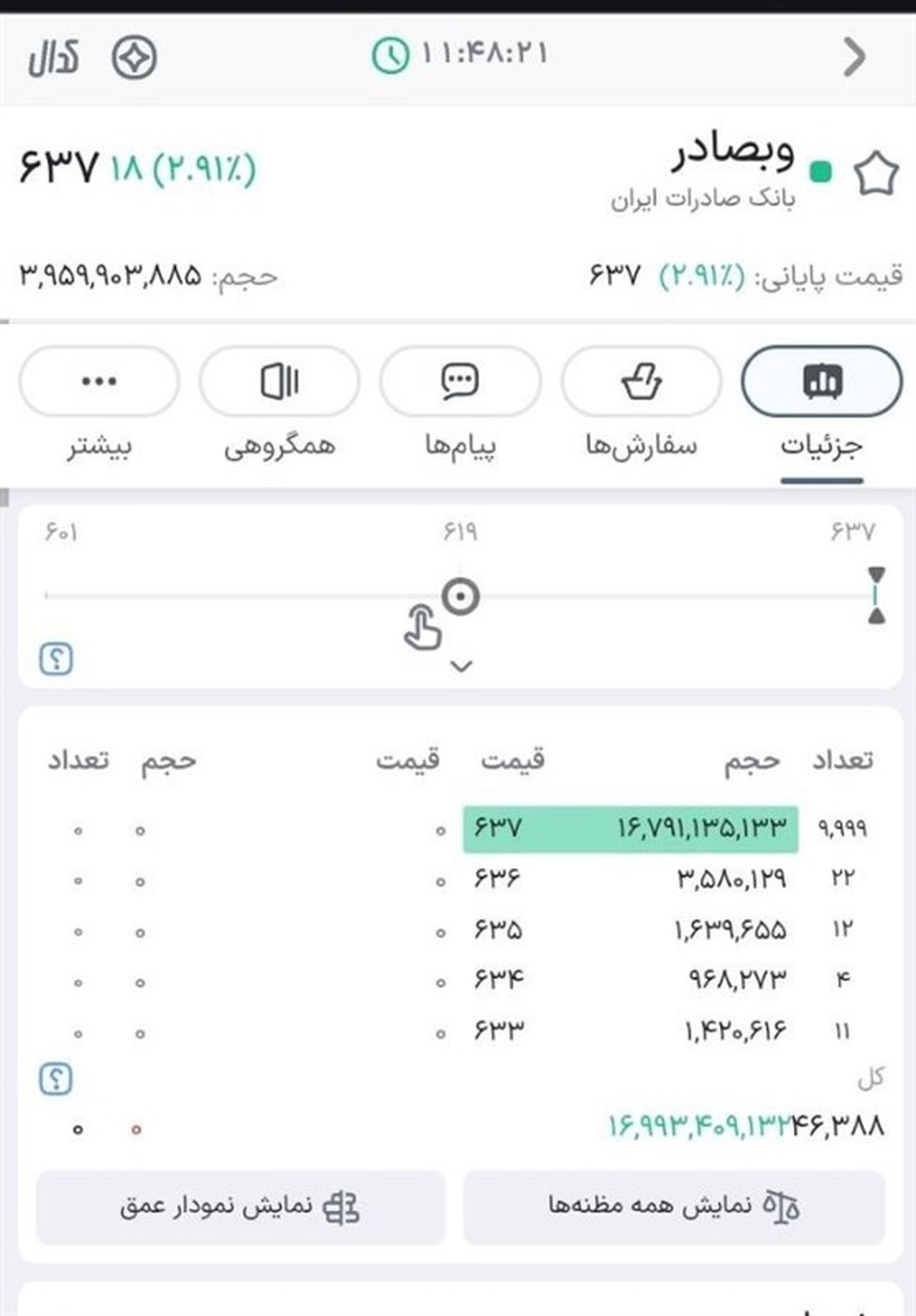 در پایان معاملات روز شنبه بیش از ۵ میلیارد و ۱۱۳ میلیون سهم «وبصادر» به ارزش بیش از ۳۲۵۷ میلیارد ریال و با نرخ ۶۳۷ ریالی به تعداد بیش از ۲۶ هزار مرتبه مورد معامله قرار گرفت و جایگاه پرتراکنشترین سهام بازار را به خود اختصاص داد.