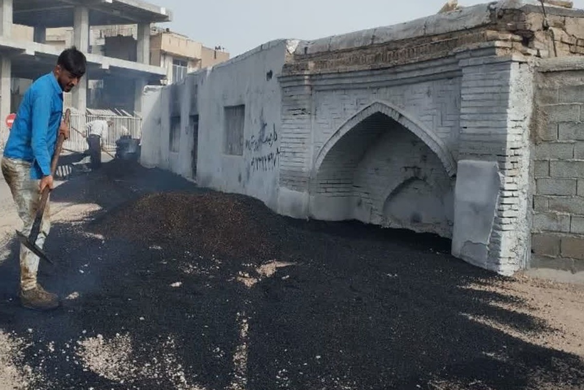 تخریب میراث ملی در سایه بیتوجهی نهادهای شهری؟ ورود غیراصولی آسفالت به حریم حمام تاریخی پیرحصار! + تصاویر