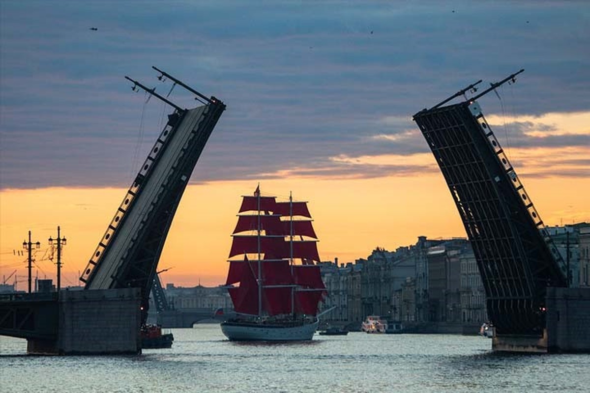 یکی از معروفترین رویدادهای سن پترزبورگ که ابتدا برای جشن فارغالتحصیلی دانشآموزان برگزار میشد، اما اکنون به جشنی عمومی با حضور بیش از یک میلیون نفر تبدیل شده است. این فستیوال شامل آتشبازی خیرهکننده، کنسرتهای فضای باز و عبور کشتی با بادبانهای قرمز از رودخانه نوا است.