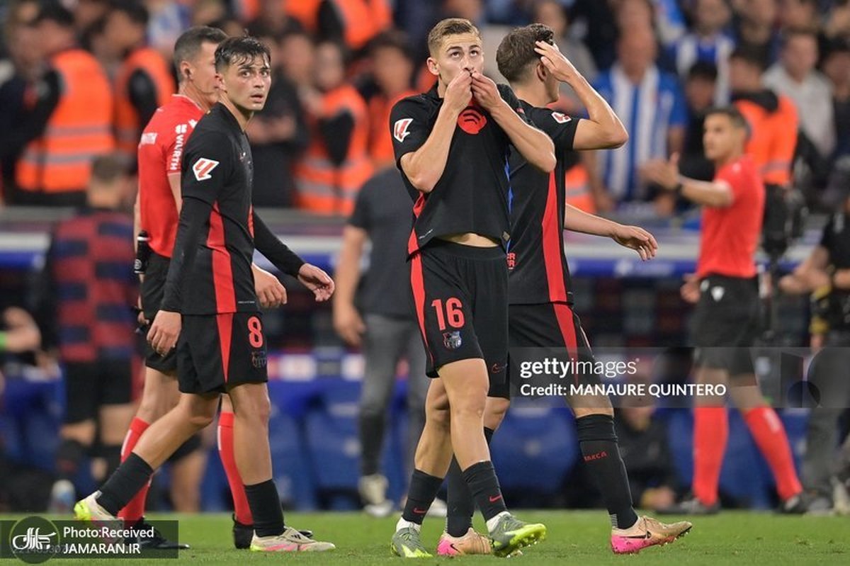 بعد از پایان بازی اسپانیول و بارسلونا، میزبان مانع از شادی بازیکنان بارسا در زمین شد.