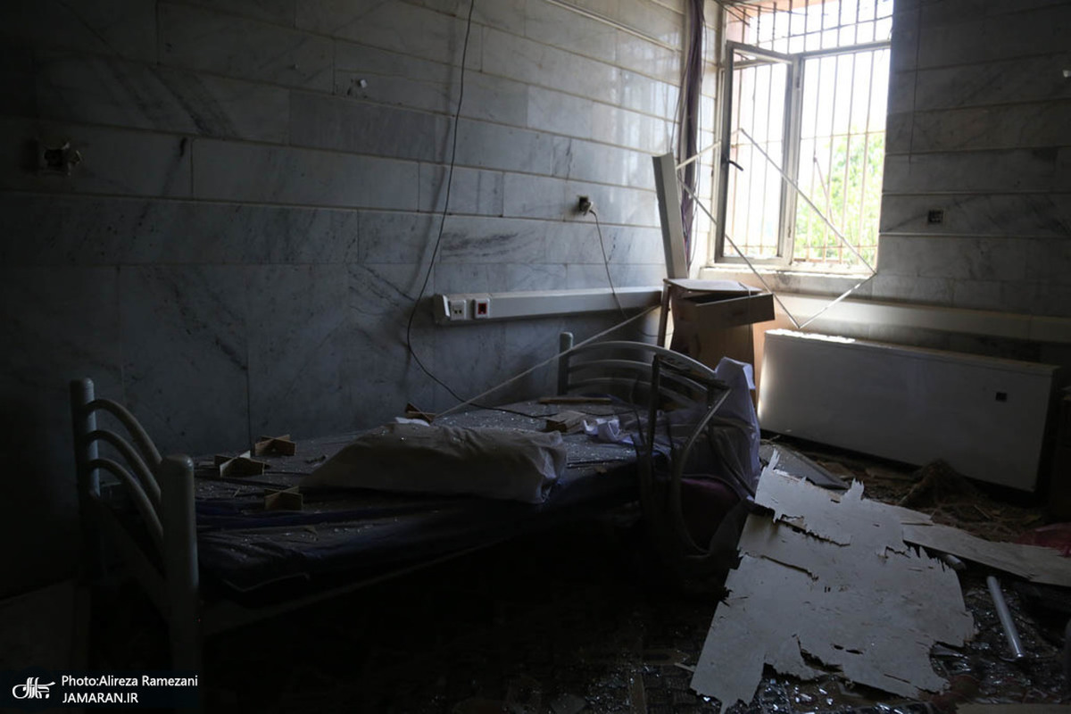این روزنامه همچنین خاطرنشان کرد: تصاویر ماهواره ای تخریب ساختمانی شامل دفاتر اداری و آسیب به یک مرکز درمانی را نشان می دهد. ویدیوهای منتشر شده در رسانههای اجتماعی، از جمله ویدیوهایی که توسط دولت ایران به اشتراک گذاشته شده است، ماشینهای سوخته و فلزات درهمتنیده را نشان میدهد. دیوار بیرونی مرکز درمانی سیاه شده و میلههای پنجرههای آن خرد شدهاند. در داخل، تجهیزات پزشکی و تختها با شیشههای خرد شده پوشیده شدهاند.