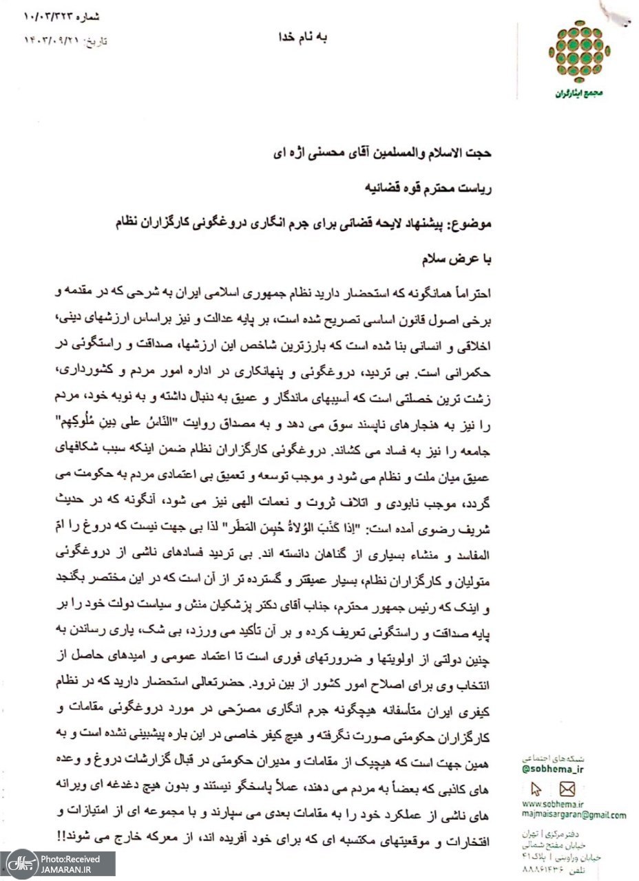 پیشنهاد مجمع ایثارگران لایحه «مجازات دروغگویی کارگزاران نظام» است؛ که کلیات آن پیشتر (۱۴۰۳) تقدیم و منتشر شده است.بجاست، با اقدامی عاجل باب پالایش گفتار کارگزاران نظام گشوده شود تا فضای رسانهای کشور پویا و کیفیتر شود و شاهد اظهارات سنجیدهتر و مسئولانهتر باشیم.