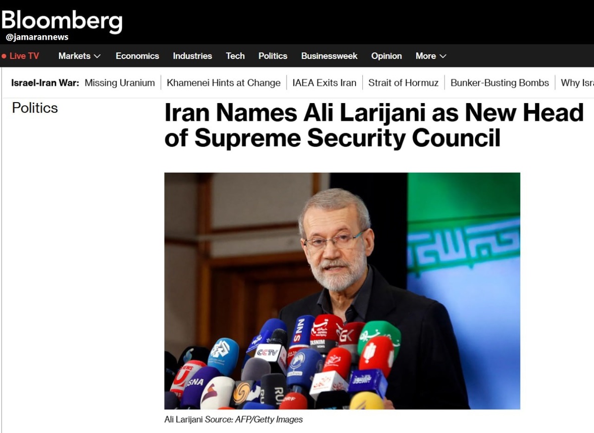 به گزارش جماران؛ خبرگزاری آمریکایی بلومبرگ در خصوص انتصاب علی لاریجانی به عنوان دبیر شورای عالی امنیت ملی نوشت: این اعلام پس از آن صورت میگیرد که شورای عالی امنیت ملی، که مسئول تصمیمگیریهای مهم در حوزه سیاست خارجی است، با تشکیل شورای جدیدی به نام «شورای دفاع ملی» موافقت کرد؛ اقدامی که بخشی از بازسازی ساختار تصمیمگیریهای راهبردی و دفاعی در جمهوری اسلامی ایران به شمار میرود.