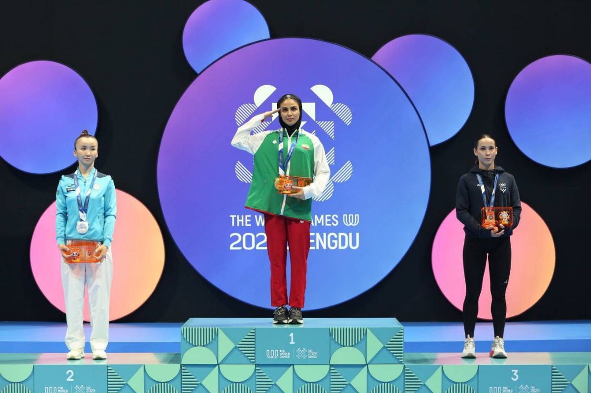 سلام نظامی سارا بهمنیار پس از کسب نخستین مدال طلای کاروان ایران در بازیهای جهانی چنگدو ۲۰۲۵ به یک تصویر با یادماندنی تبدیل شد.