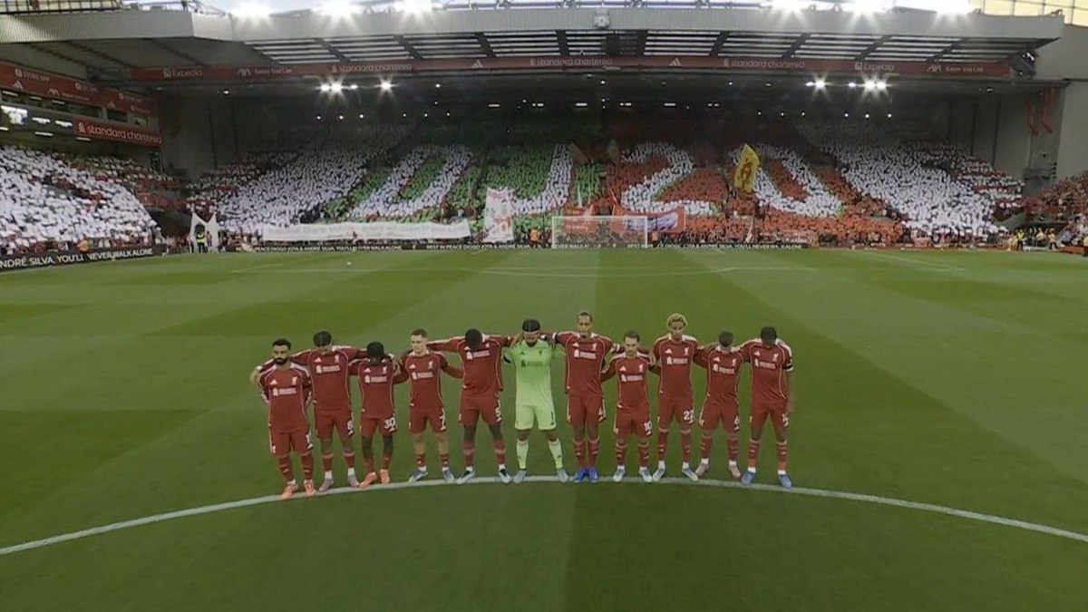 هواداران و بازیکنان در اولین بازی خانگی لیورپول در لیگ برتر انگلیس به بازیکن فقید این تیم دیگو ژوتا وبرادرش آندره ادای احترام کردند.