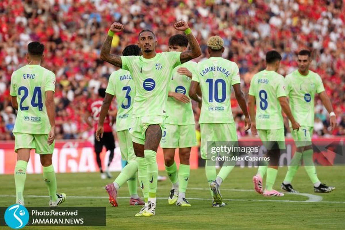 جماران ورزشی؛ در ادامه بازیهای هفته نخست فصل جدید لالیگا (۲۶-۲۰۲۵) و از ساعت ۲۲ امشب (شنبه) تیم فوتبال بارسلونا در دیداری خارج از خانه به مصاف مایورکا رفت و به پیروزی ۳ بر صفر رسید. رافینیا (۷)، فران تورس (۲۳) و لامین یامال (۴+۹۰) گلزنان بلوگرانا در این بازی بودند. مایورکا در این دیدار ۲ بازیکن خود به نامهای متنو مورلانس و ودات موریقی را در فاصلهای چند دقیقهای (۳۳ و ۳۹) به دلیل دریافت کارت قرمز از دست داد و ۹ نفره به ادامه بازی پرداخت.