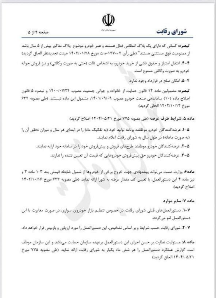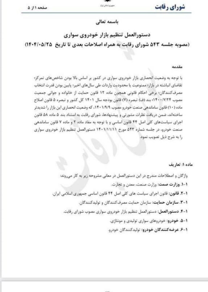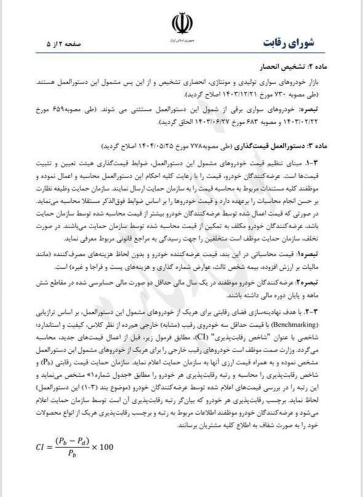 براساس مصوبه جدید شورای رقابت، خودروسازان از این پس میتوانند قیمت محصولات خود را بهطور مستقیم و بر مبنای فرمول «کاستپلاس» تعیین و عرضه کنند.