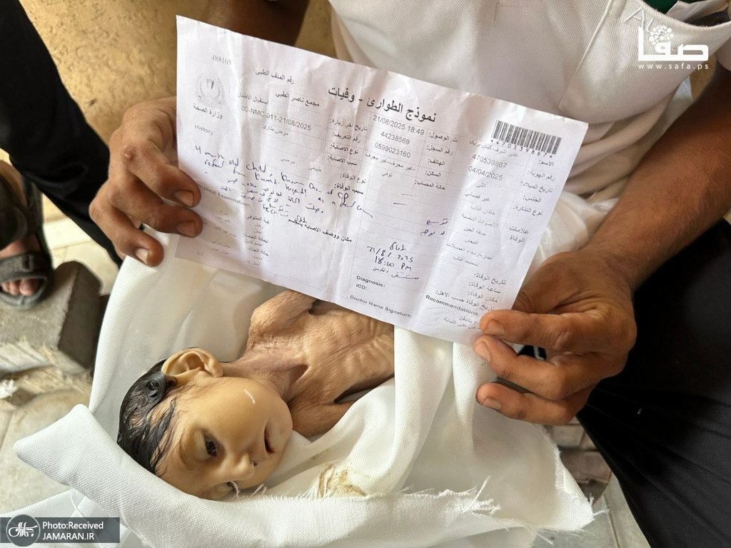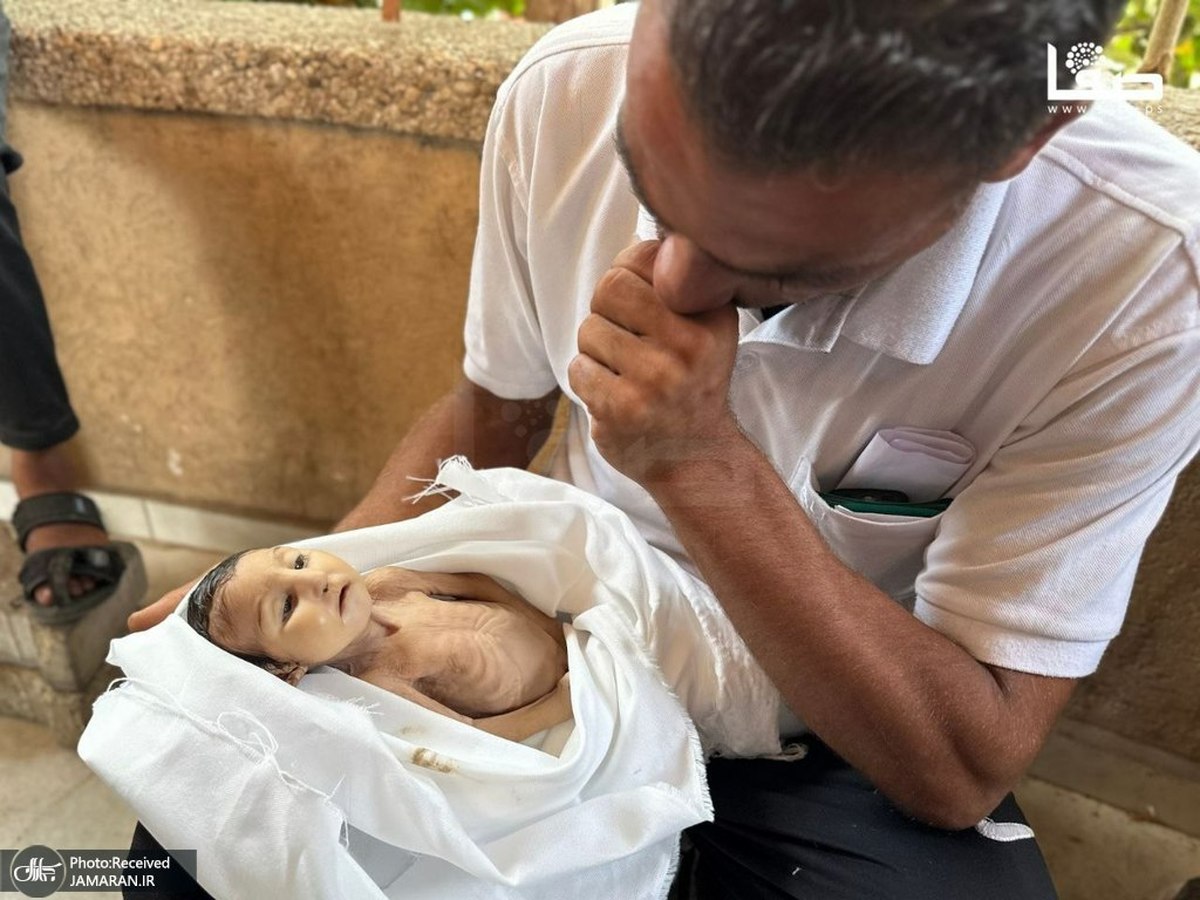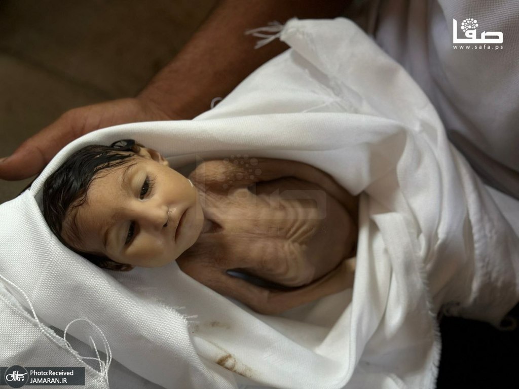 این نوزاد، یکی از صدها کودک فلسطینی است که قربانی محاصره و سیاست گرسنهسازی رژیم صهیونیستی شدهاند.