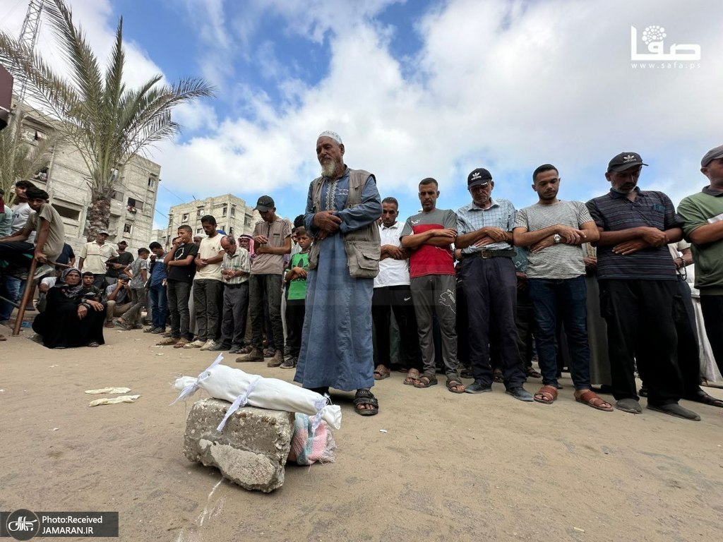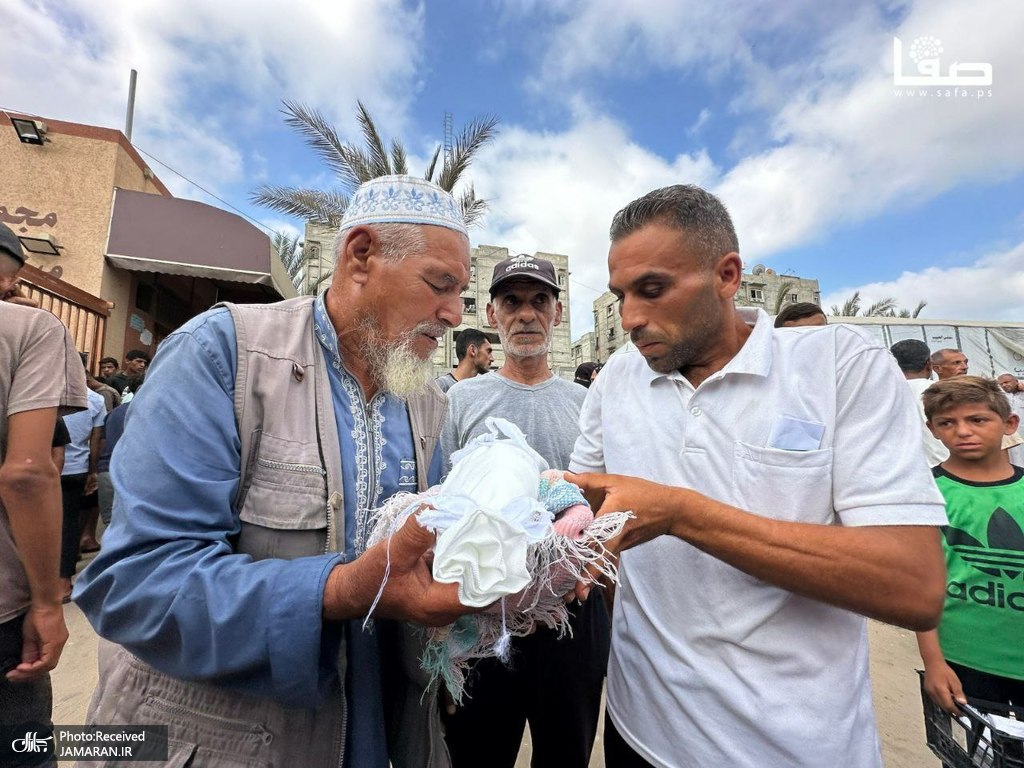 تشییع پیکر نوزاد شهید بر اثر قحطی در خانیونس + عکسهای دردناک
