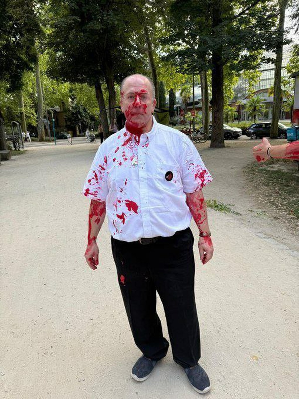 پاشیدن رنگ قرمز بر روی یک اسرائیلی در آلمان + عکس