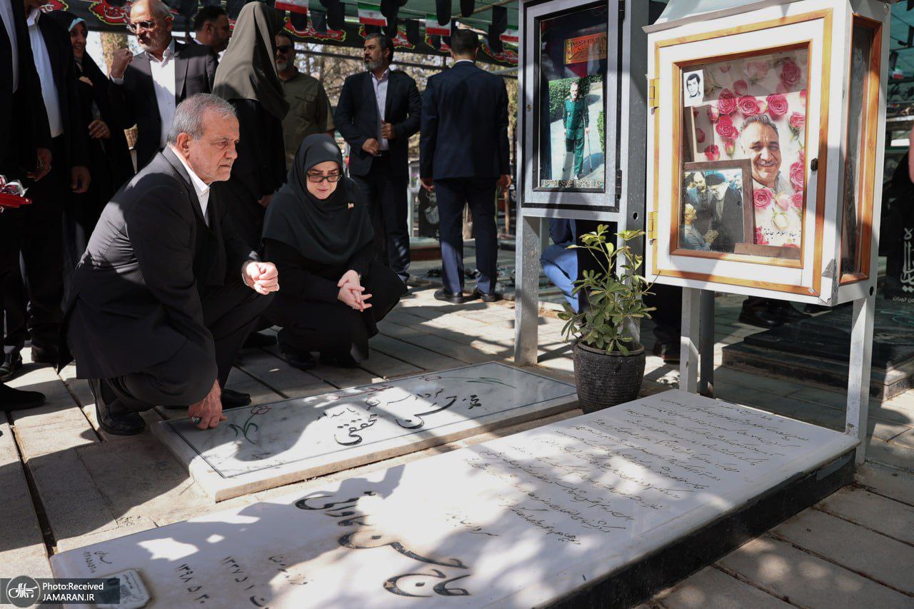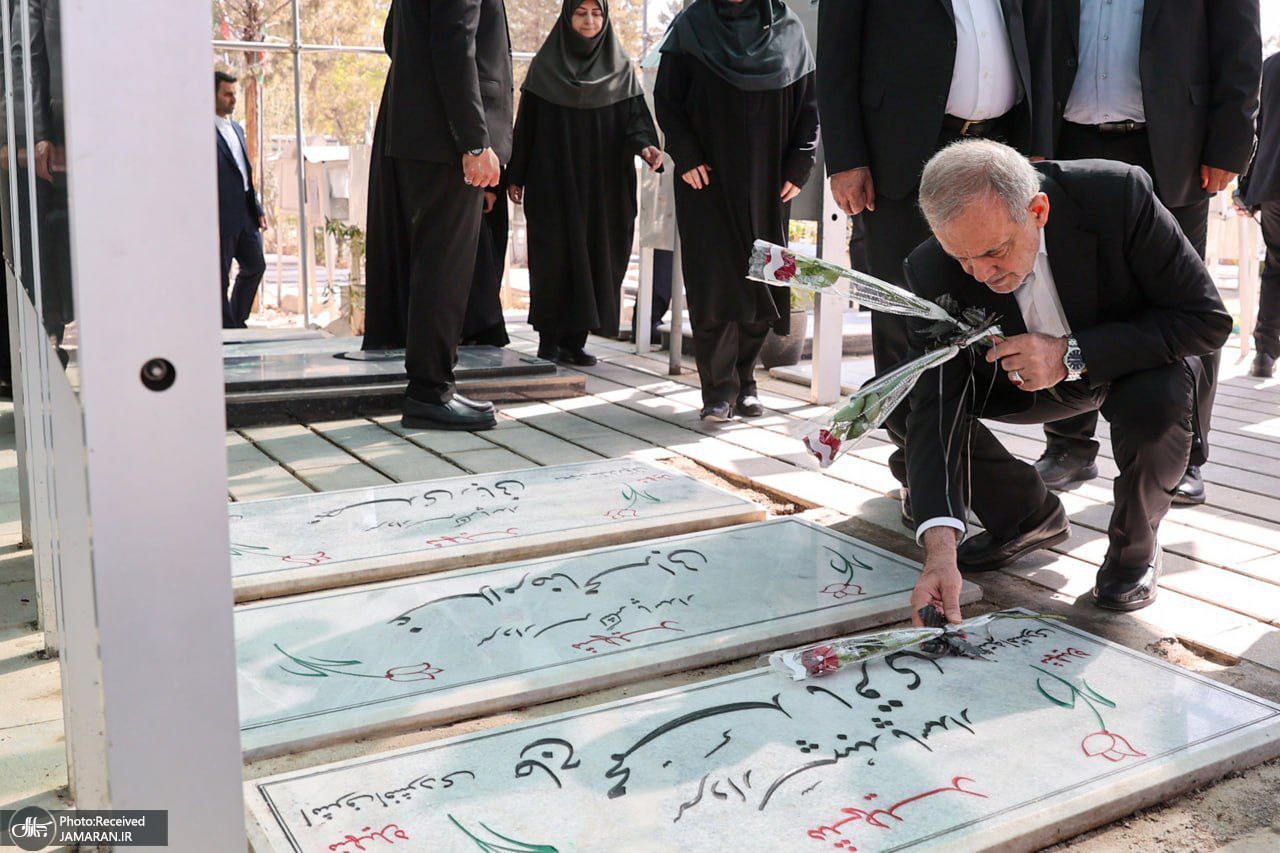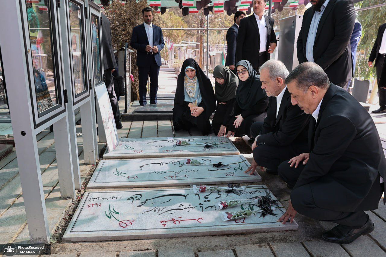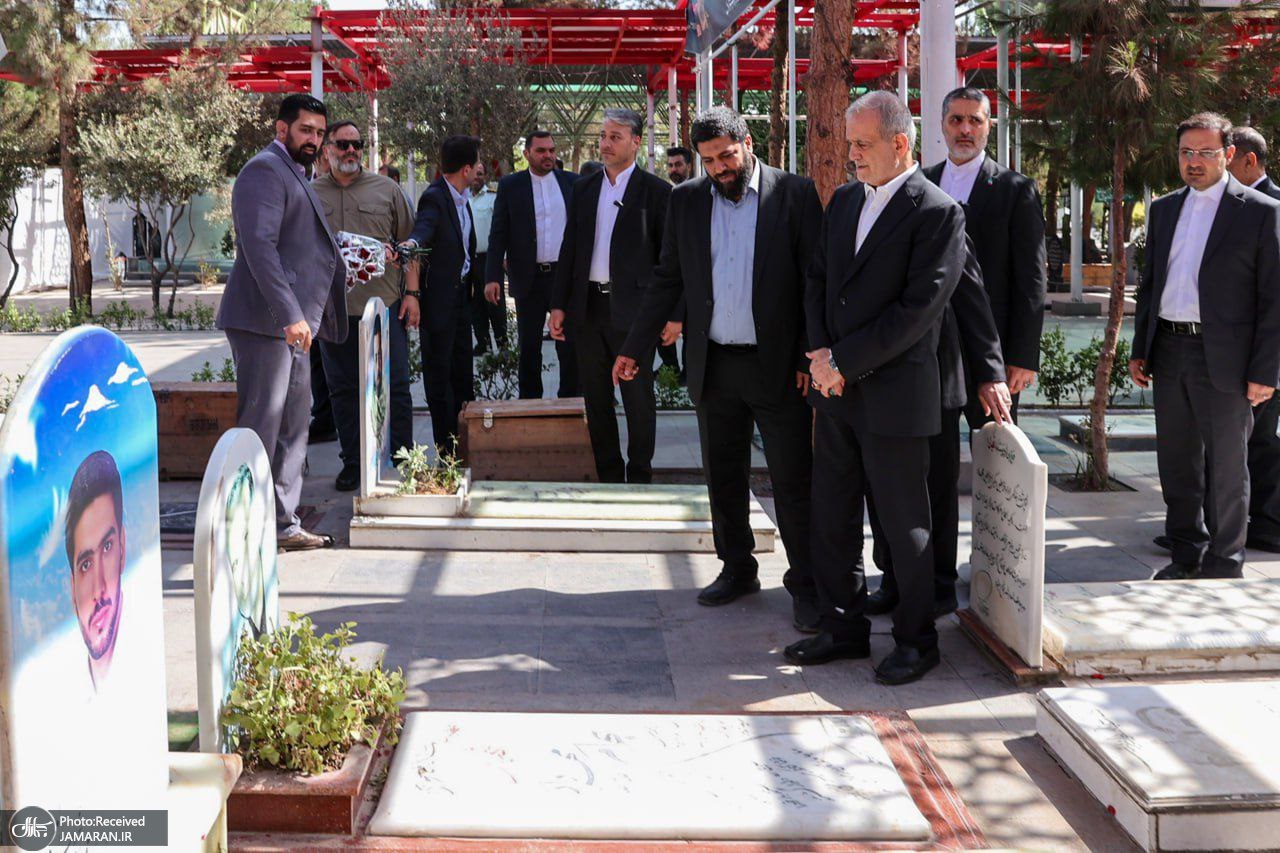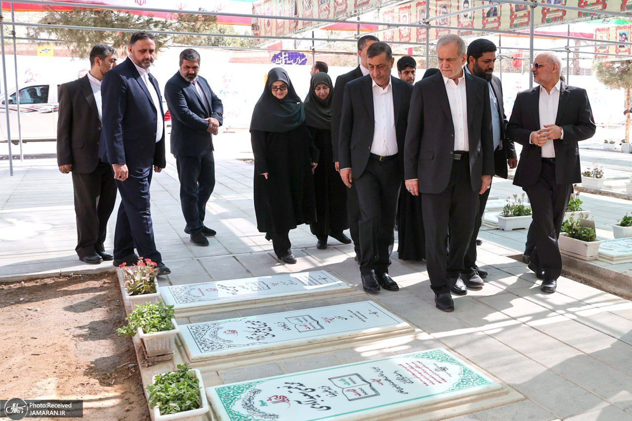 حضور پزشکیان بر مزار شهدای تجاوز رژیم صهیونیستی علیه ایران + عکس ها