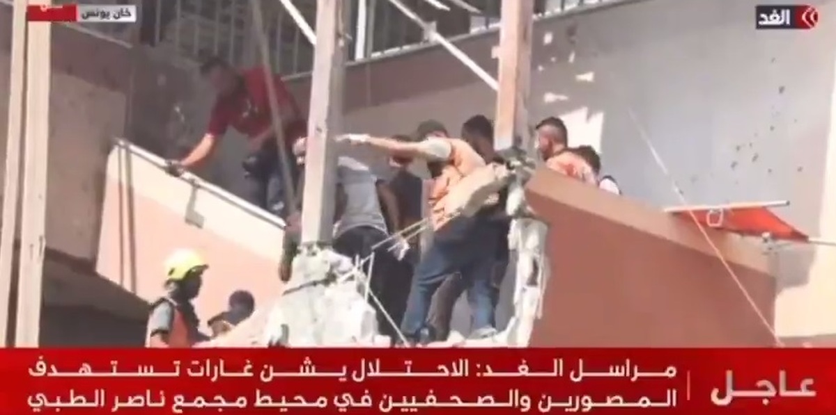 رژیم اسرائیل بیمارستان ناصر در جنوب غزه را هدف قرار داد. دقایقی بعد، اسرائیل امدادگرانی که برای نجات بازماندگان تلاش می کردند را روی آنتن زنده به شهادت رساند.