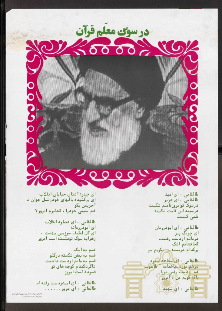 به همین مناسبت و در سالگرد درگذشت آیتالله طالقانی، منتخبی از پوسترهای مرتبط با ایشان موجود در مجموعه پوسترهای انقلاب اسلامی در آرشیو مرکز اسناد کتابخانه مجلس به نظر علاقهمندان می رسد.