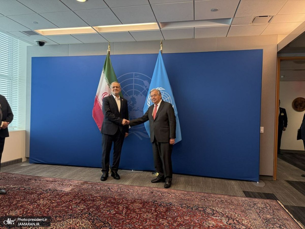 دیدار پزشکیان و دبیرکل سازمان ملل متحد در نیویورک + عکس