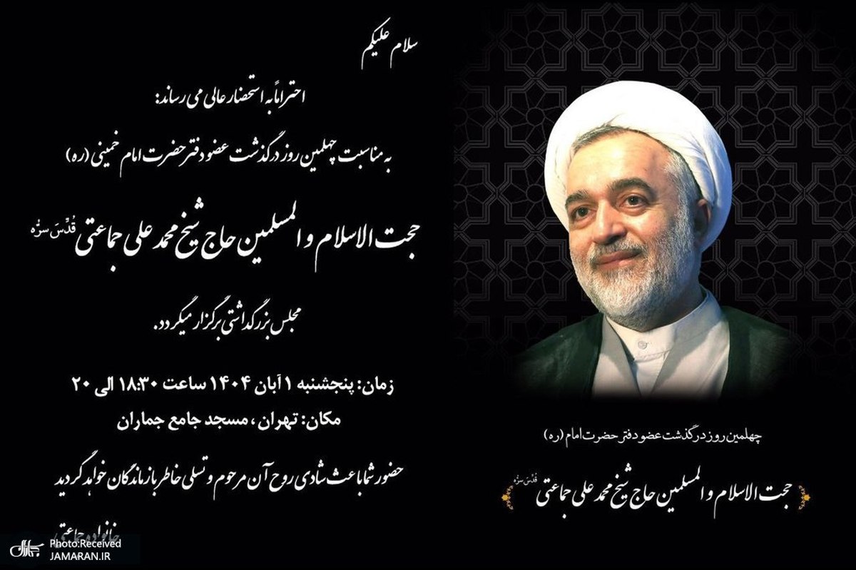 مراسم بزرگداشتی به مناسبت چهلمین روز درگذشت حجت الاسلام و المسلمین محمدعلی جماعتی عضو دفتر حضرت امام خمینی (ره) برگزار می شود.