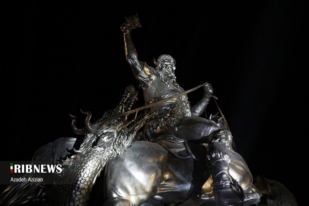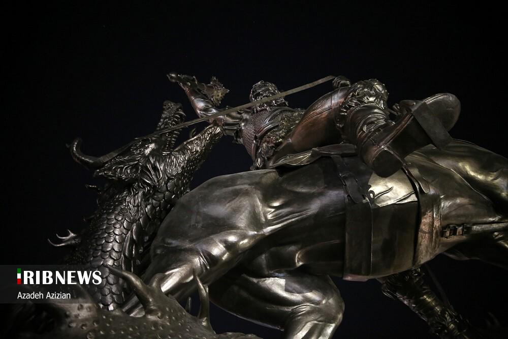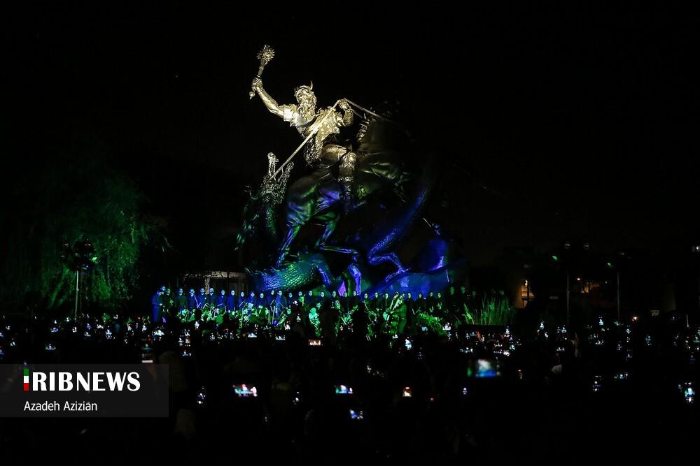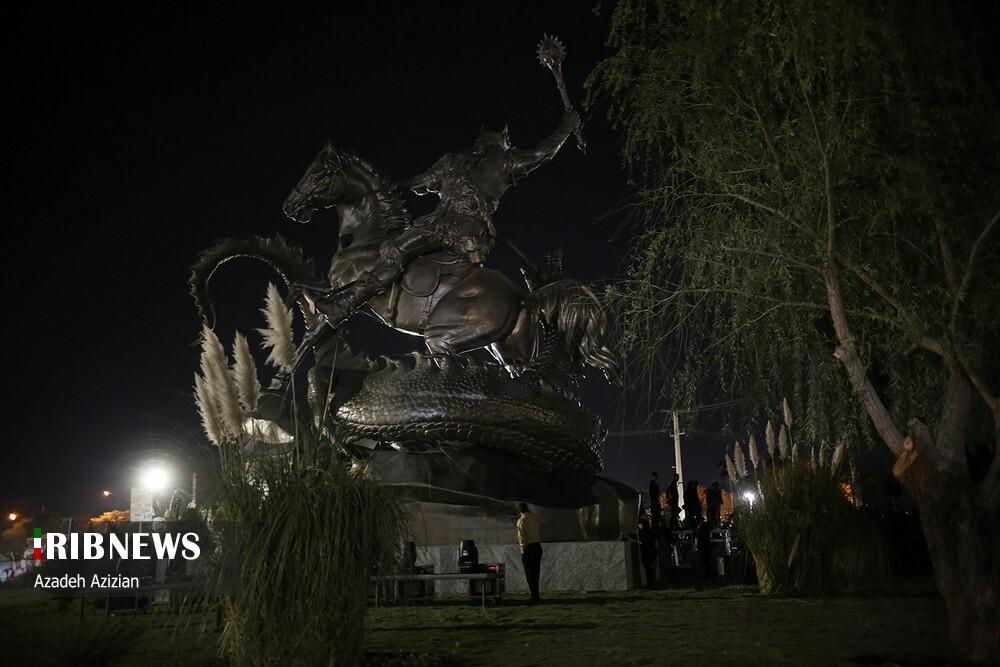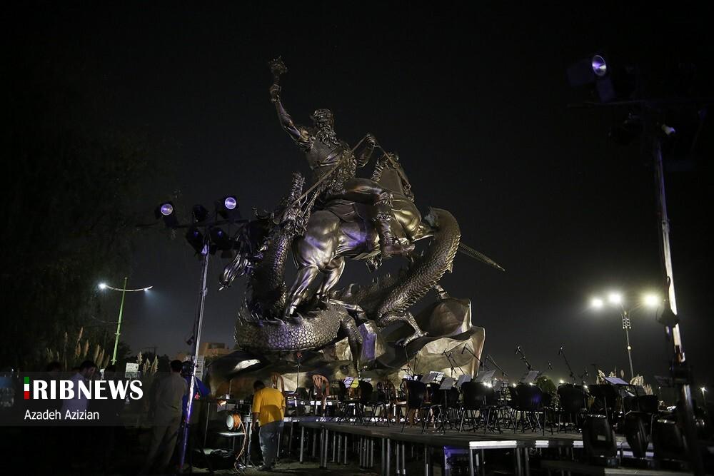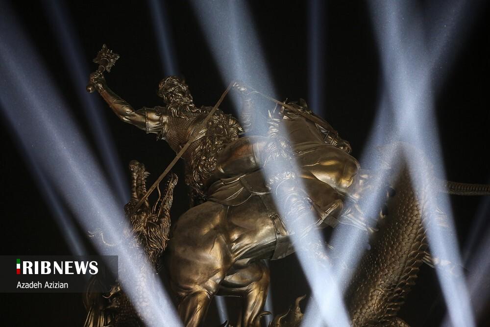 آیین رونمایی از «نبرد رستم، رخش و اژدها» بزرگترین مجسمه اقتباسی ایران + گزارش تصویری