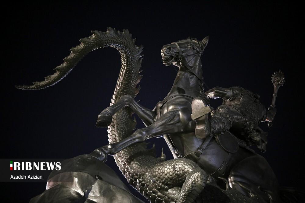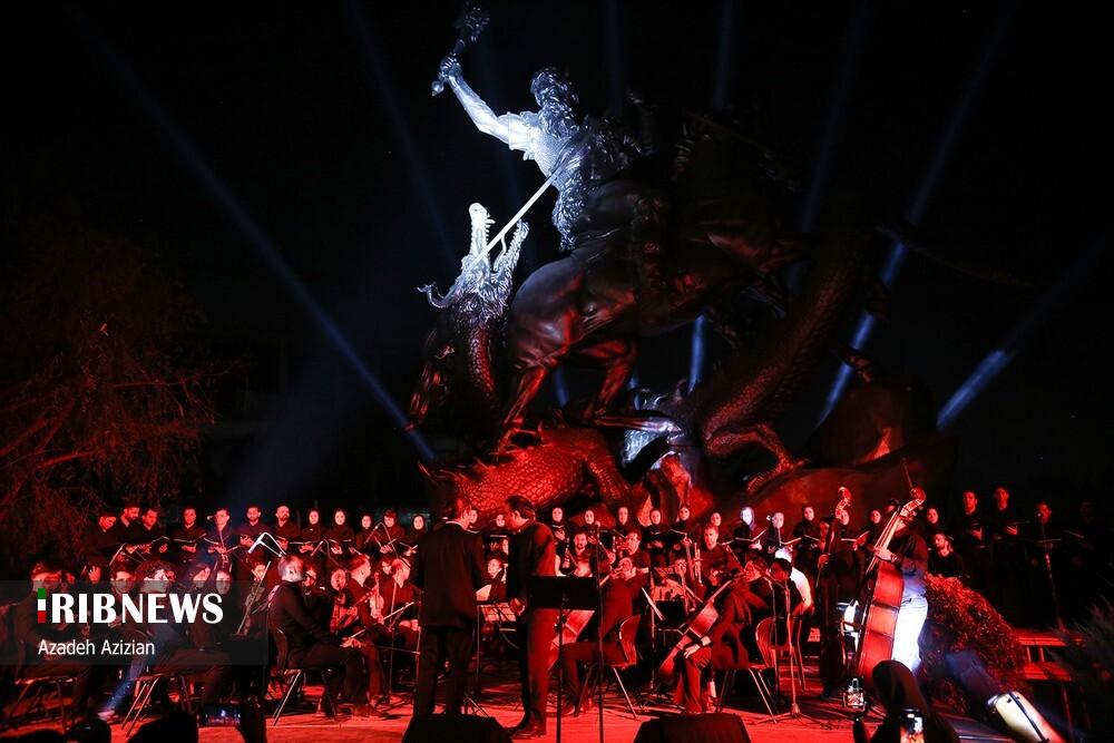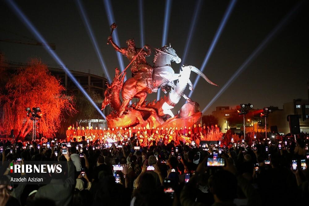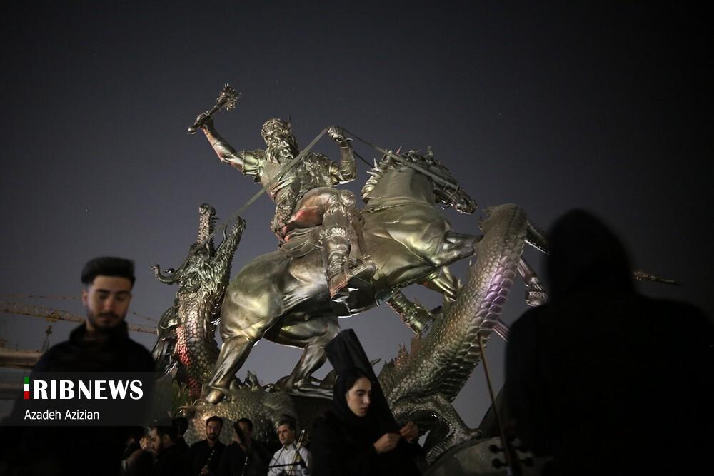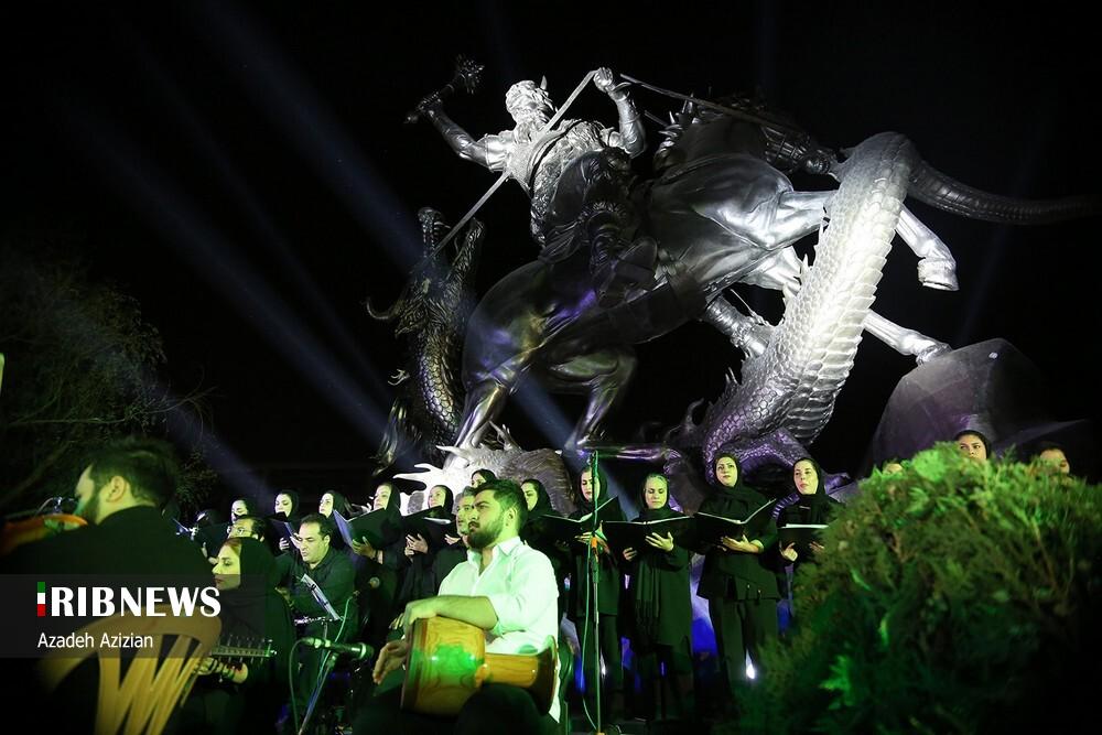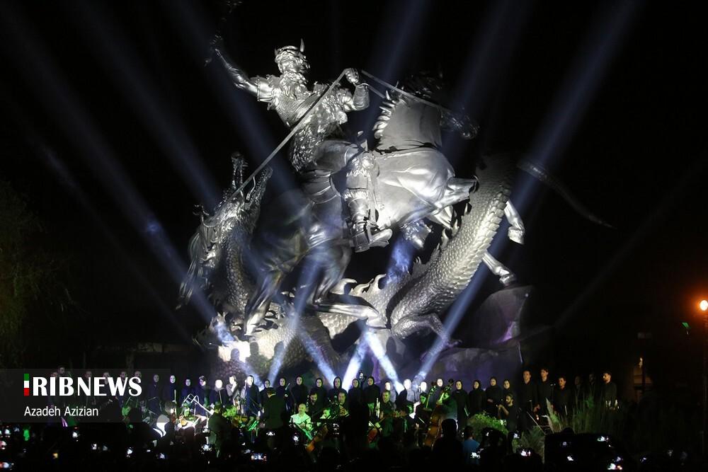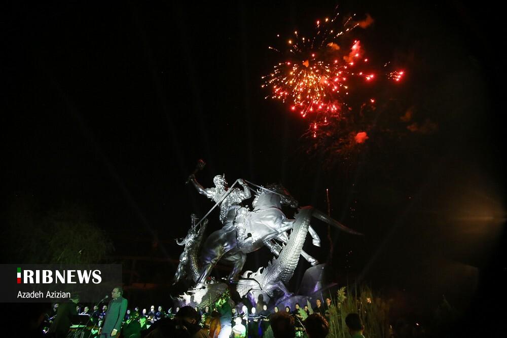 آیین رونمایی از «نبرد رستم، رخش و اژدها» بزرگترین مجسمه اقتباسی ایران + گزارش تصویری