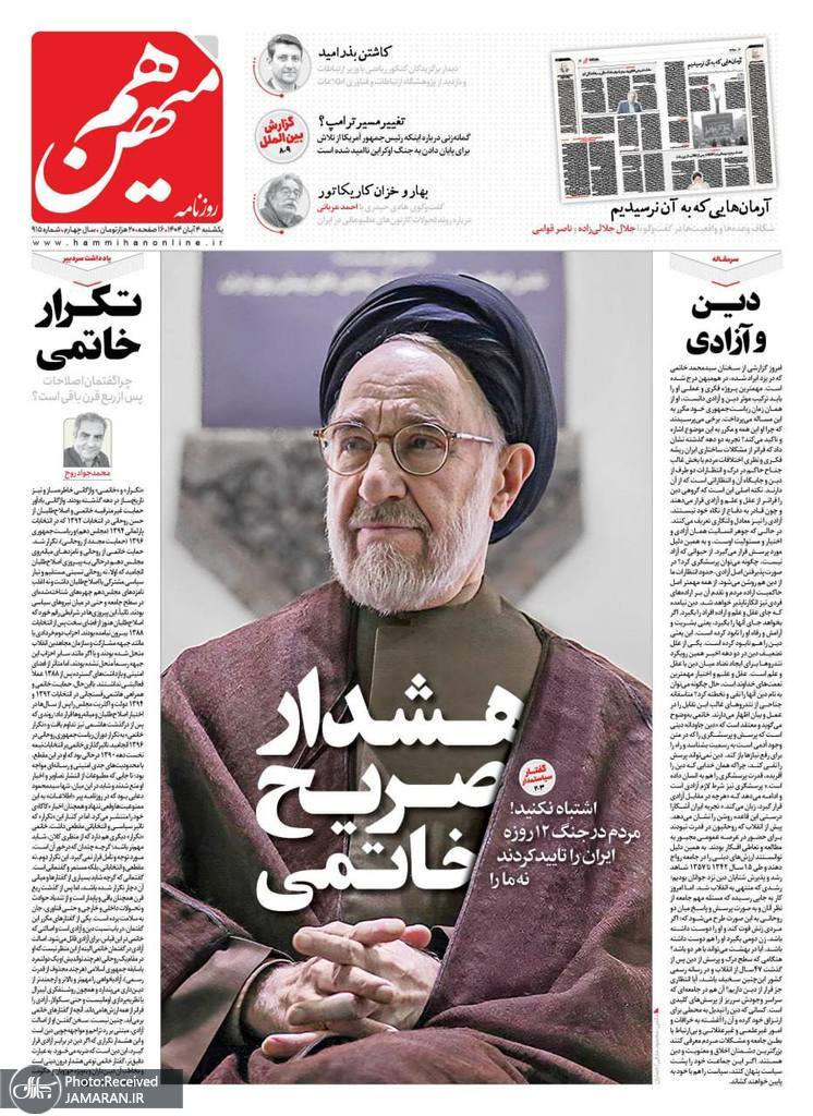 بازگشت سید محمد خاتمی به صفحه اول روزنامهها؛ بی توجهی ۲ روزنامه اصلاح طلب! + عکسها