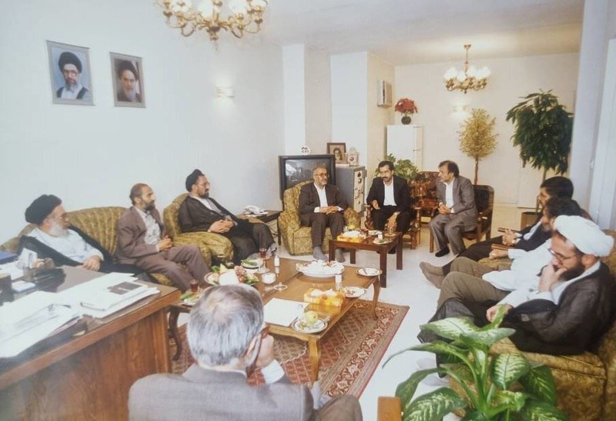 عکسی ۳۰ ساله از جلسهای با حضور مرحوم محمود دعایی، آیتالله موسوی خوئینیها و حسین شریعتمداری و غلامحسین کرباسچی از دورانی که ایران فقط ۸ روزنامه سراسری داشت