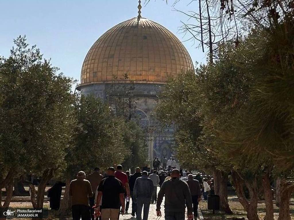 حضور هزاران فلسطینی در نماز جمعه مسجدالاقصی + عکس ها