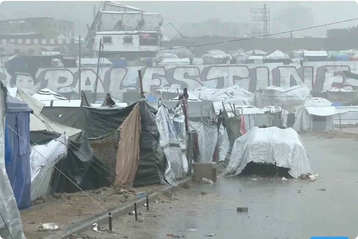 شامگاه دوشنبه، باران های شدید همراه با سامانه جوی باعث غرق شدن صدها چادر آوارگان و پرواز تعداد زیادی از آنها به ویژه در مناطق «شالیهات» و تل الهوا در غرب شهر غزه شد.