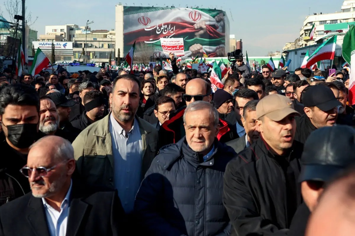 حضور پزشکیان در راهپیمایی ۲۲ دی در کنار مردم + عکس