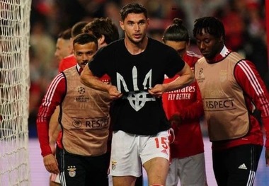 فوتبالیست اوکراینی بنفیکا به دلیل نشان دادن آرم ارتش کشورش پس از گلزنی، اخطار گرفت.