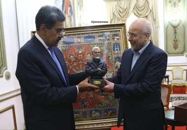 قالیباف تندیسی از شهید سلیمانی را که خانواده حاج قاسم برای مادورو ارسال کرده بود تقدیم وی کرد.