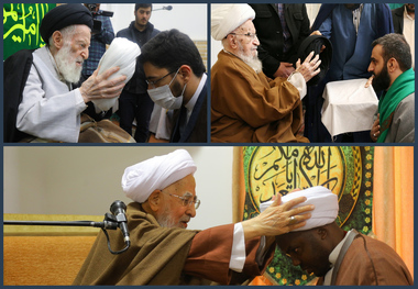 عمامه گذاری طلاب توسط مراجع عظام تقلید در روز میلاد امام علی (ع)