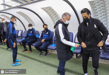 تصاویری جالب از فراز کمالوند در حال ضدعفونی کردن دست اعضای کادر فنی استقلال منتشر شد.