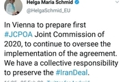 دبیرکل سرویس اقدام خارجی اتحادیه اروپا در پیامی توییتری نتایج نشست امروز کمیسیون مشترک برجام را اعلام کرد.